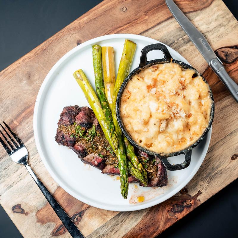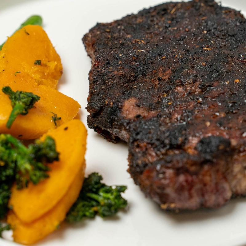 All steaks are seasoned with TF signature rub and come with 2 sides.